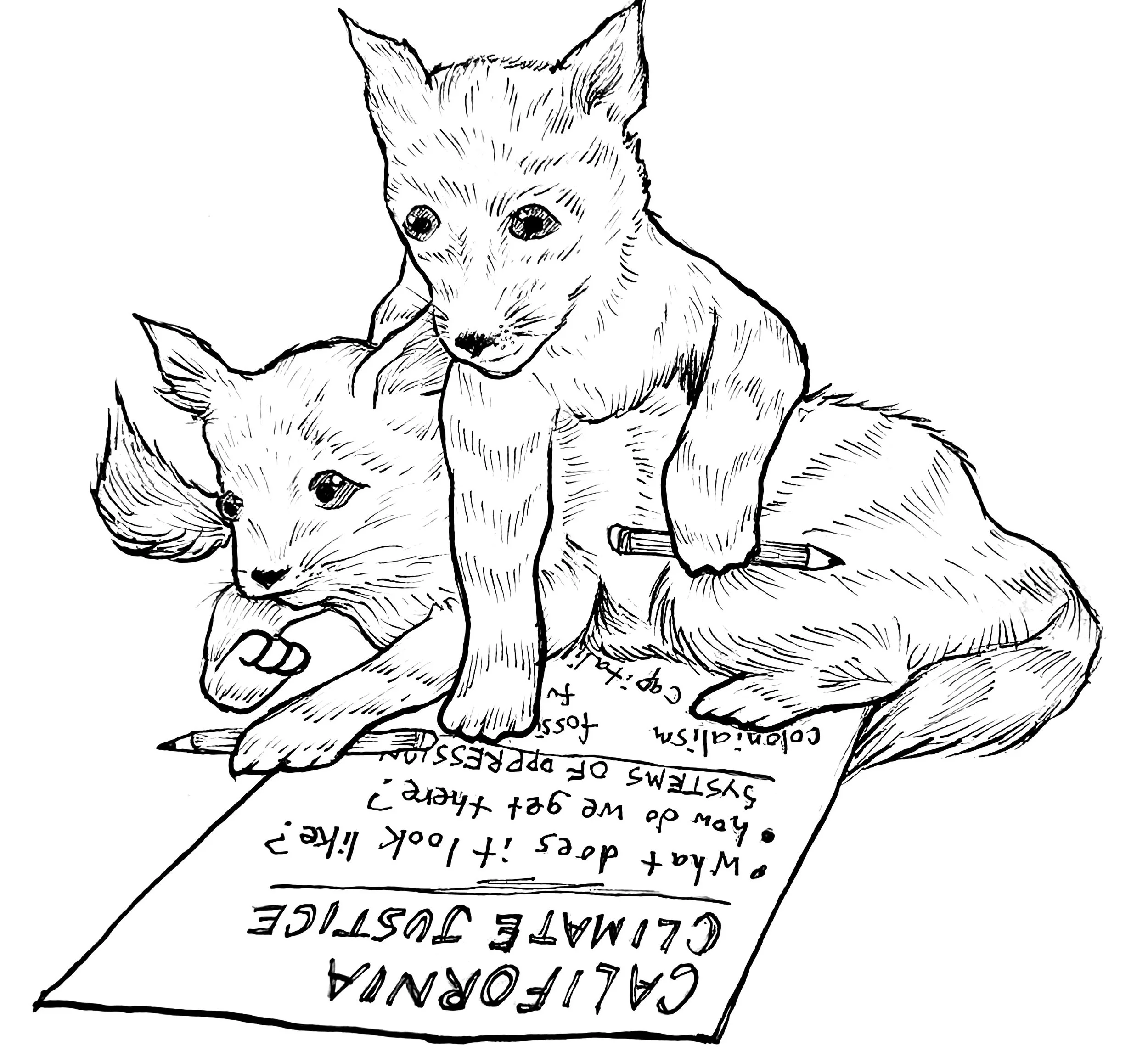 Together, we are creating a mega-story trilogy of illustrations about interlinked crises in California, and this land’s role in global justice.